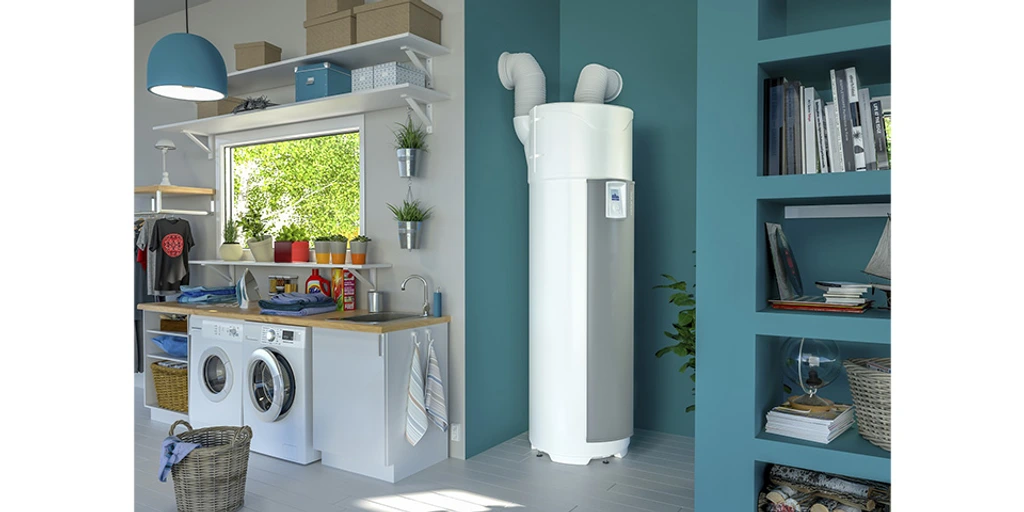 Le chauffe-eau thermodynamique combine une pompe à chaleur avec un ballon d’eau chaude.