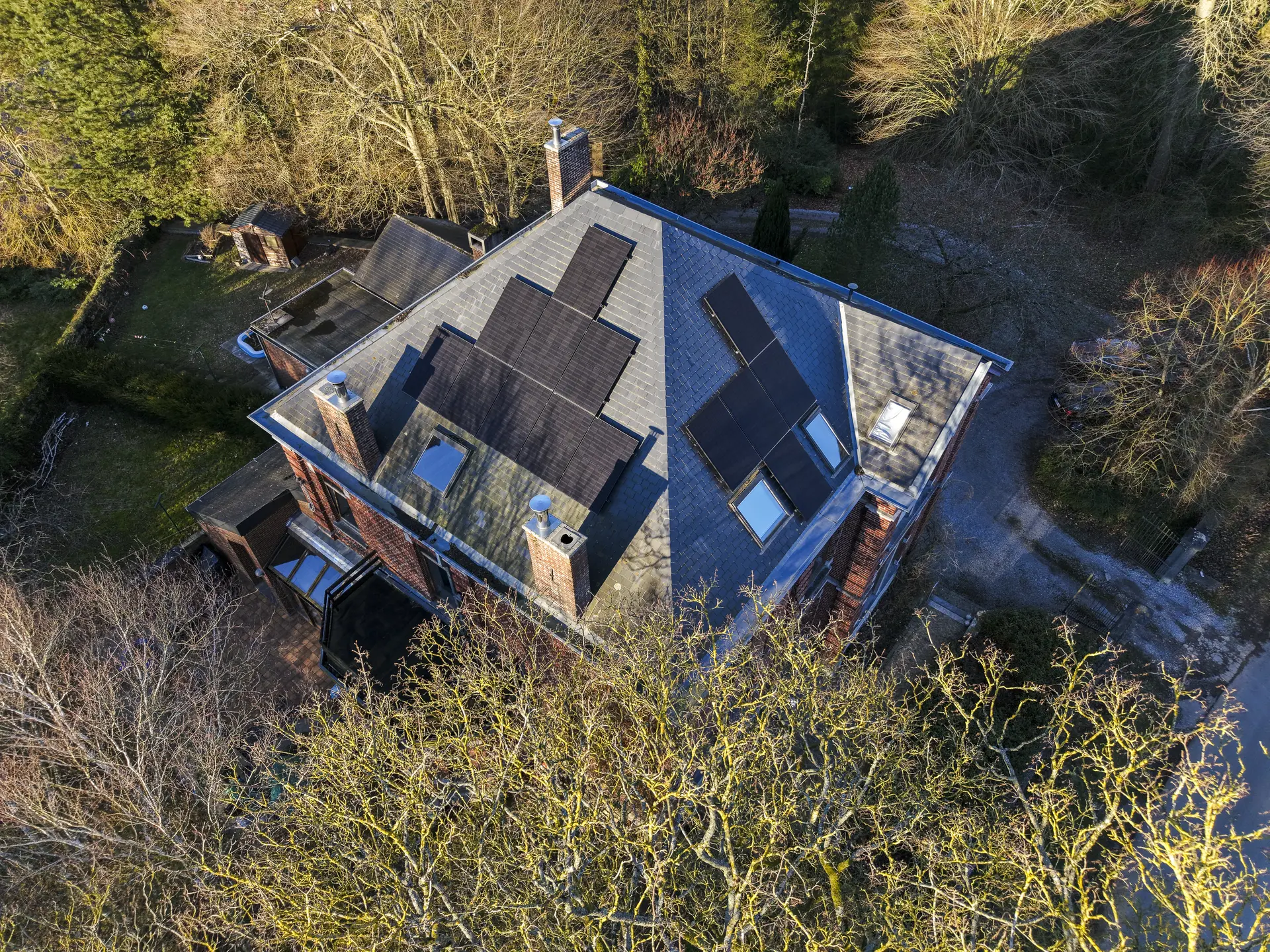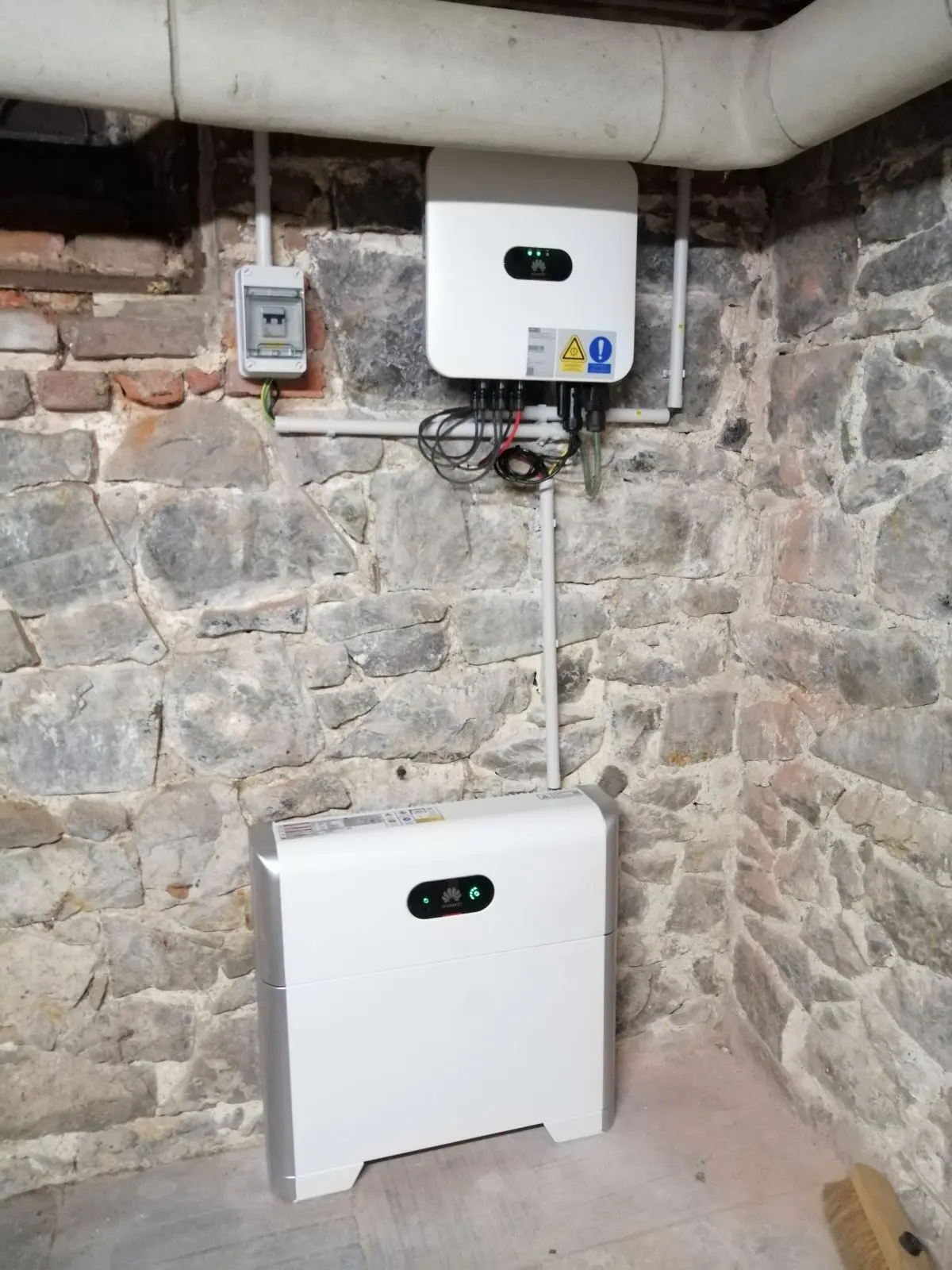 We installeerden 14 Jinko Tiger Neo Full Black panelen van 425Wc, waarvan de volledig zwarte afwerking harmonieus samengaat met de leien. De Huawei Sun2000 omvormer beheert de productie, terwijl een Luna2000 batterij van 5 kWh een opslagreserve biedt die aangepast is aan de omvang van de installatie.